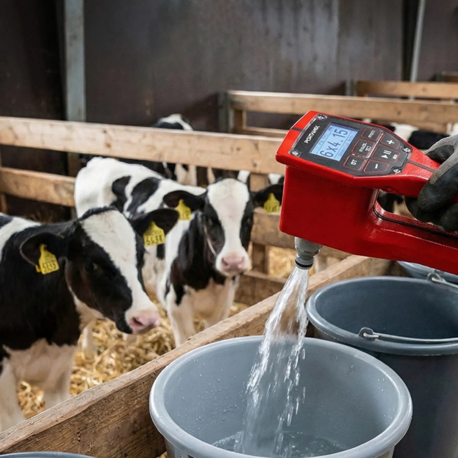 Decide how much water you need in the barrel or mixer (for example, enough for your morning group of calves).